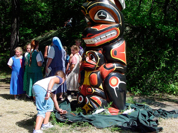 month this summer crafting the totem pole from a 140-year-old cedar log